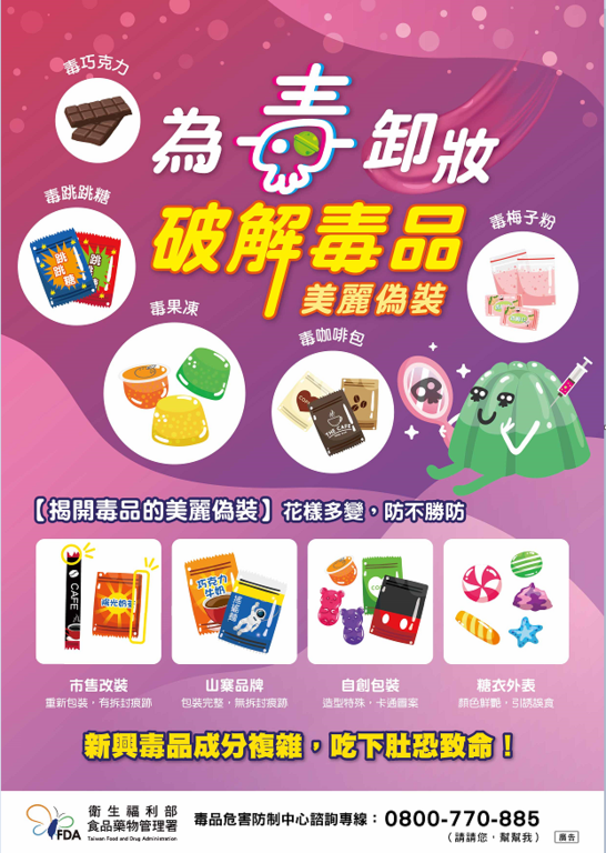 近年有多篇報導指出不肖人士多藉由通訊軟體的匿名性及隱密性,以隱晦的術語代稱各種毒品種類,將販賣毒品的訊息發布在聊天室或群組中。不知情的青少年可能因為一時好奇而誤觸毒害,往往在得知使用的物質是毒品後感到悔不當初,不僅影響個人身心健康,更打亂了人生的步調,實在得不償失!
