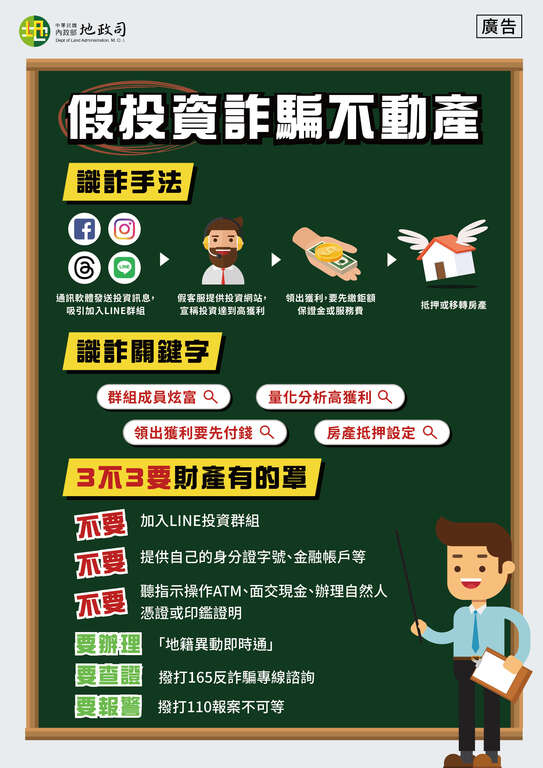 「防範假投資詐騙不動產」宣導圖卡