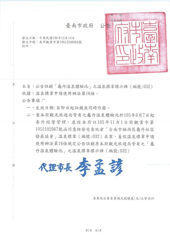 撤銷本局「龜丹溫泉體驗池」溫泉標章(.pdf)