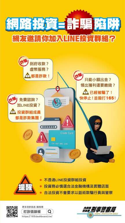 「假投資詐騙」及「假檢警詐騙」反詐騙海報