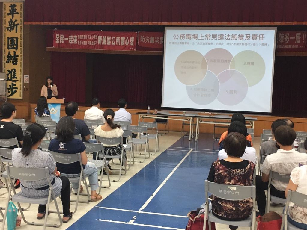 臺南市政府觀光旅遊局為落實市府「清廉勤政」之施政理念,針對負有審核、稽查、取締等准駁權限之同仁,建立相關法治觀念,凝聚廉能共識,營造內部監督機制,特於9月29日在新營區公所3樓會議室舉辦基層扎根廉政工程教育講習座談。為擴大宣導效益,並邀請後壁區公所及下營區公所同仁共同參與。